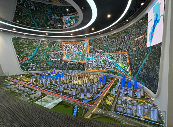 园区内现代建筑群错落有致,每一砖一瓦都蕴含着创新和科技的基因。利来国际w66科技IT菁英暑期实训营的学员们怀揣着对科技的无限憧憬步入研创园展厅。展厅内部设计充满科技感,一块块巨大的模型和显示屏映入眼帘,生动展现了研创园的科技规划,以及从梦想走向现实的开展历程。